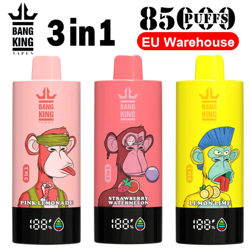 Bang King 85k Puffs offre un vape usa e getta 3 in 1 ultra resistente con fino a 85.000 puff, alimentato da una batteria da 600 mAh e una coil a mesh da 1,0Ω per un sapore stabile e ricco. Con ricarica rapida Type-C e 12 gusti popolari, è progettato per prestazioni e comodità durante tutta la giornata. Confezionato 10 pezzi per scatola e 200 pezzi per cartone, Bang King 85k Puffs supporta prezzi di fabbrica, stock in magazzino UE e spedizione veloce gratuita per acquirenti al dettaglio e all’ingrosso.