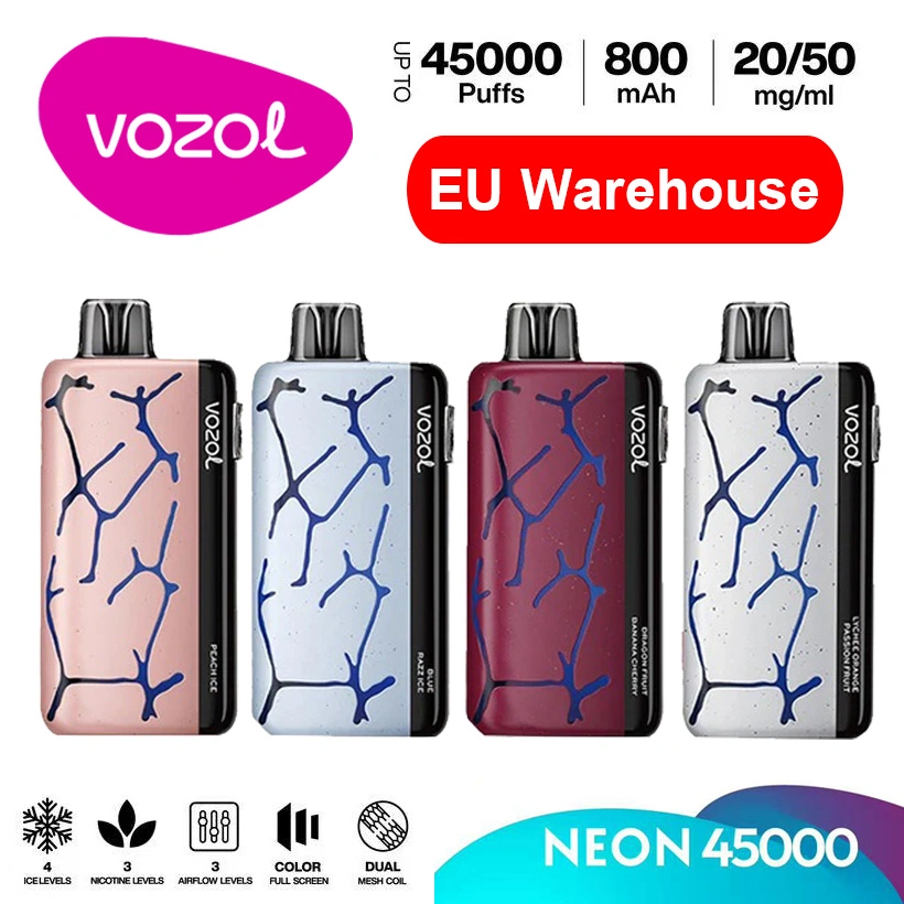 Il Vozol Neon 45000 Puffs è una sigaretta elettronica usa e getta ad alte prestazioni, dotata di batteria da 800mAh e doppia mesh coil per un vapore intenso e morbido. Dispone di schermo a colori, controllo del ghiaccio a 4 livelli, 3 livelli di nicotina e 3 modalità di airflow. Disponibile in 26 aromi, confezionamento all’ingrosso e spedizione rapida dal magazzino UE.